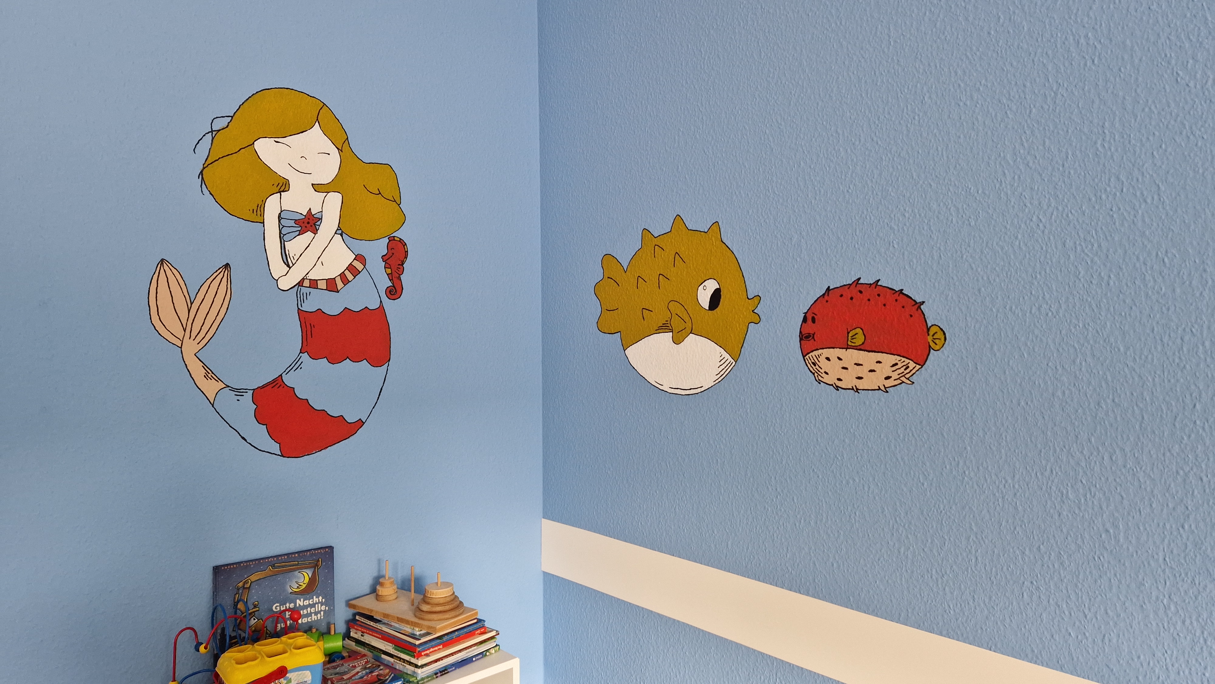 Ein Rätsel für die kleinen Betrachter haben unsere Schülerinnen und Schüler zwischen all dem Meeresgetier außerdem versteckt. Damit die Wartenden nicht nur zuschauen müssen, brachten die Schülerinnen und Schüler ihre Motive nun als Ausmalbild vorbei.
