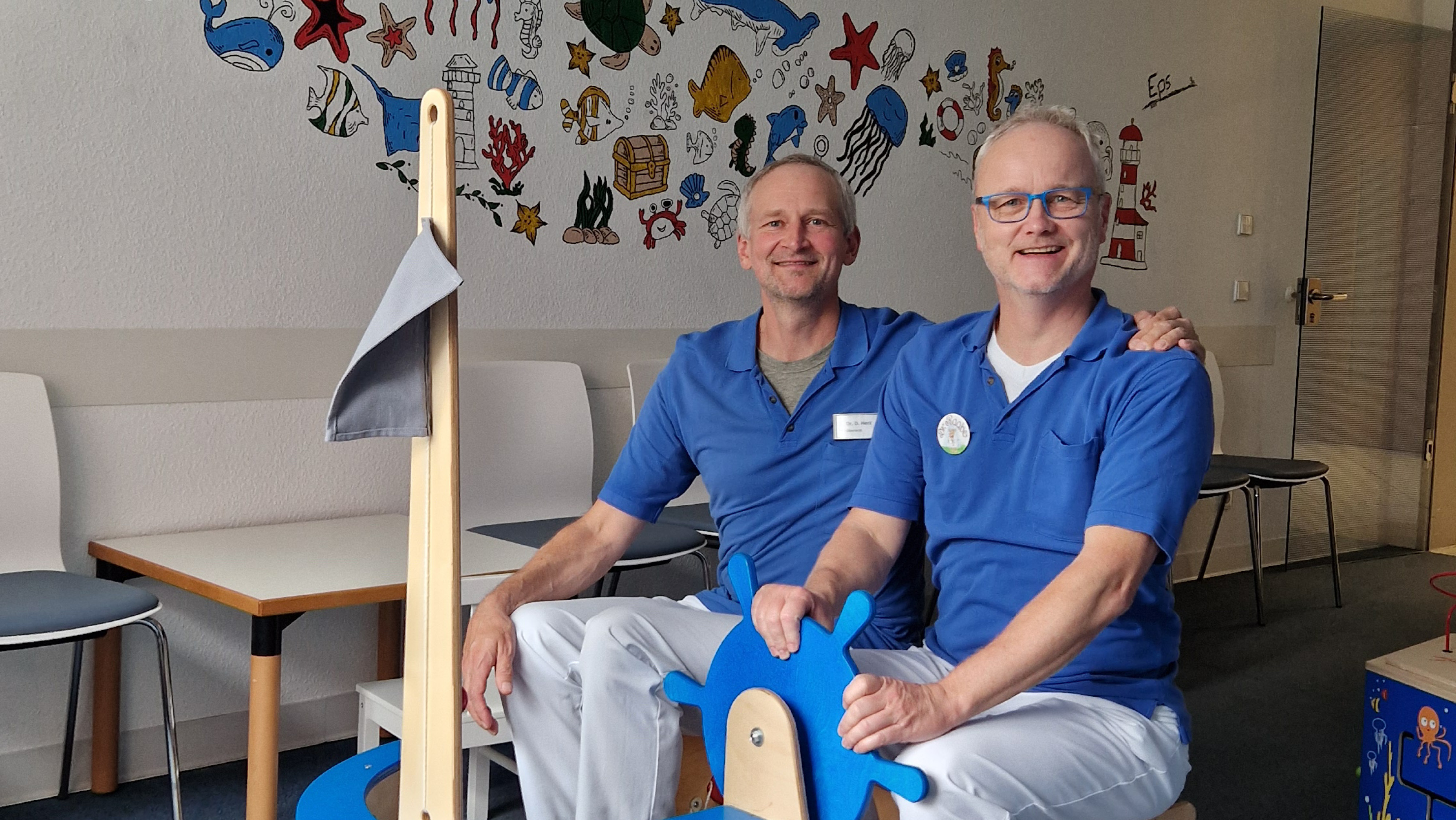 Neu ist auch das kleine Boot, in dem kleine Piraten nun verwegen warten können. „Wahrscheinlich“, so überlegt die Chefärztin amüsiert, „bemalt ihr am besten auch noch unsere Sprechzimmer, damit wir die Kinder von hier weglotsen können, wenn sie aufgerufen werden.“