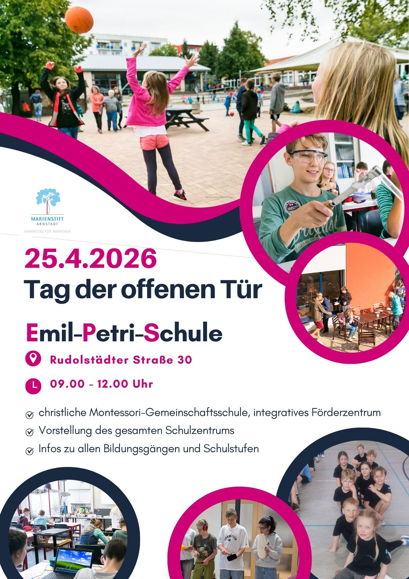 Lerne uns kennen und komm mit deinen Eltern am 25. April 2026 zum Tag der offenen Tür in die Rudolstädter Straße 30.